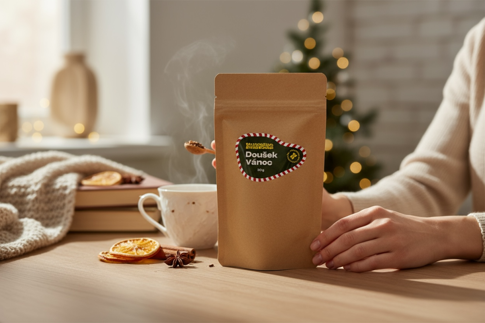 Objevte pravou vůni Vánoc v hrnku – náš Doušek Vánoc je originální směs, kterou jsme vytvořili s láskou přímo u nás v Konotéce. 🌿